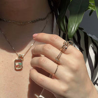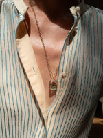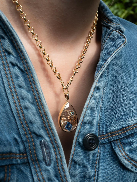 Cuidadosamente elaborada a partir de cobre bañado en oro y combinada con una cadena clásica de 45 cm (18 pulgadas), esta pieza está diseñada para guardar los recuerdos y las personas que más aprecias.